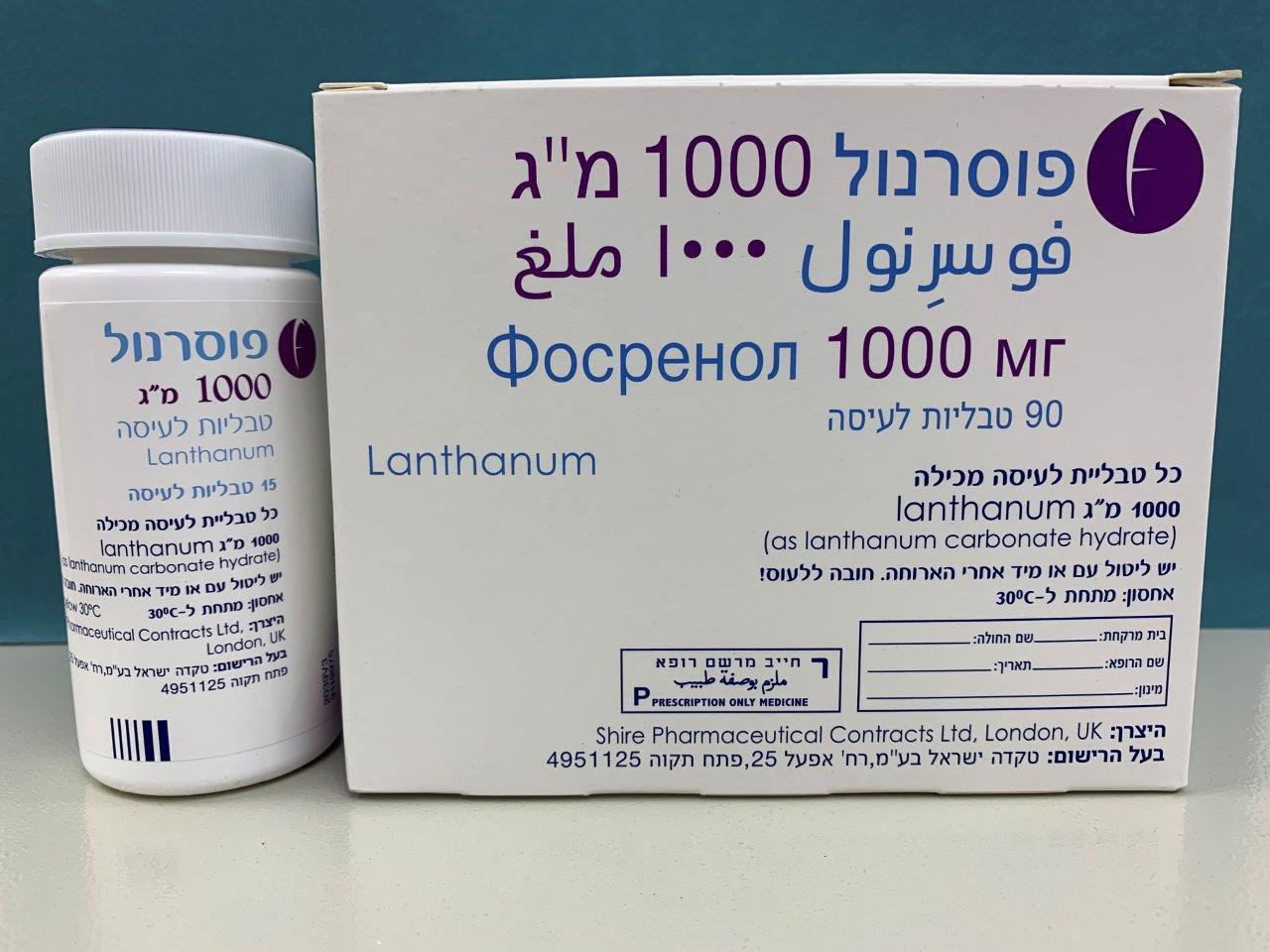 פוסרנול 1000 מ"ג טבליות לעיסה - Fosrenol 1000 mg chewable tablets